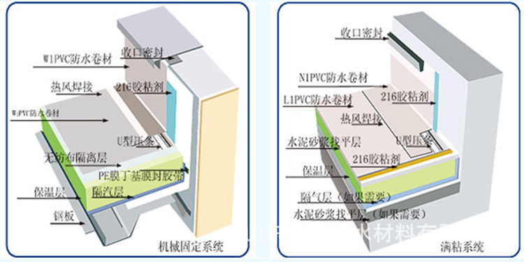 * 整体性好,卷材间的接缝严密可靠;防水层有较高的强度和一定的延伸性能;材料稳定性好、耐腐蚀性强、使用寿命长。