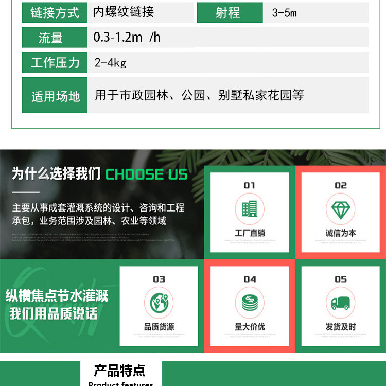 | 用途 | 家庭园艺 公共绿地的喷灌 |