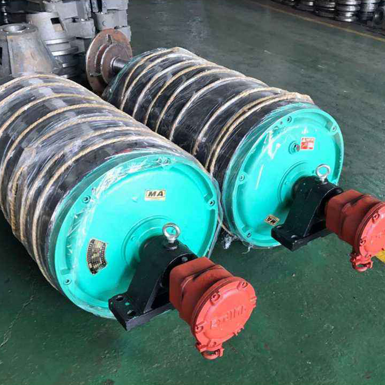 tdy75型油冷式电动滚筒是DT型、DTⅡ型通用固定式胶带机的内驱动装置,其内部采用定轴齿轮二级传动,属于老产品,但用途泛,与减速机相比较,具有占地小、重量轻、外观整齐、效率高,在粉尘大、潮湿泥泞的恶劣环境下仍能正常工作等优点。随着电动滚筒的不断革新与技术进步,根据需要也可以制成三级减速(0.08-0.63米/秒之间的低带速),以满足用户之要求。TDY75型油冷式电动滚筒 (简称电动滚筒) 是以电动机为动力,靠胶带的连续运动传送各种物料的一种新型内部驱动装置。