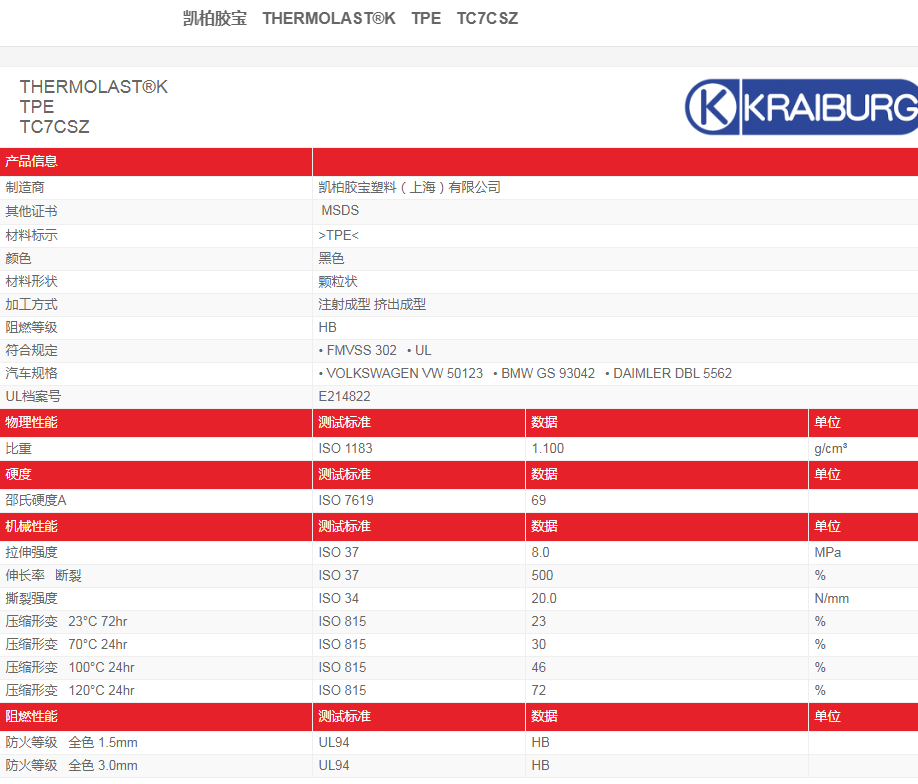 德国胶宝 TPE K TC7CSZ 好的着色性 好粘结性 热稳定性好 垫圈 紧固件 密封件 膜 汽车内部零件; 汽车外部零件; 柔软触感应用 电线电缆 插头 厨具包胶 电动工具包胶 厨具餐具 电器配件 电子元部件 ...