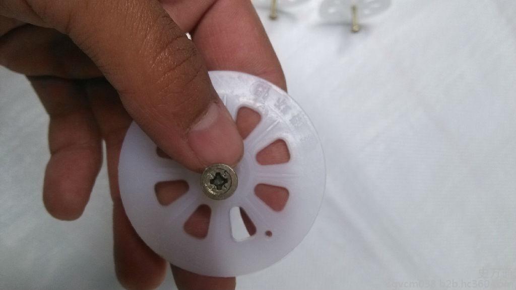 保温钉由三部分:一是尼龙制成的套管;二是套管内的镀锌钢螺丝;三是套管前的尼龙圆盘(用以压盖保温板)。它的长度根据保温板厚度而有所不同。