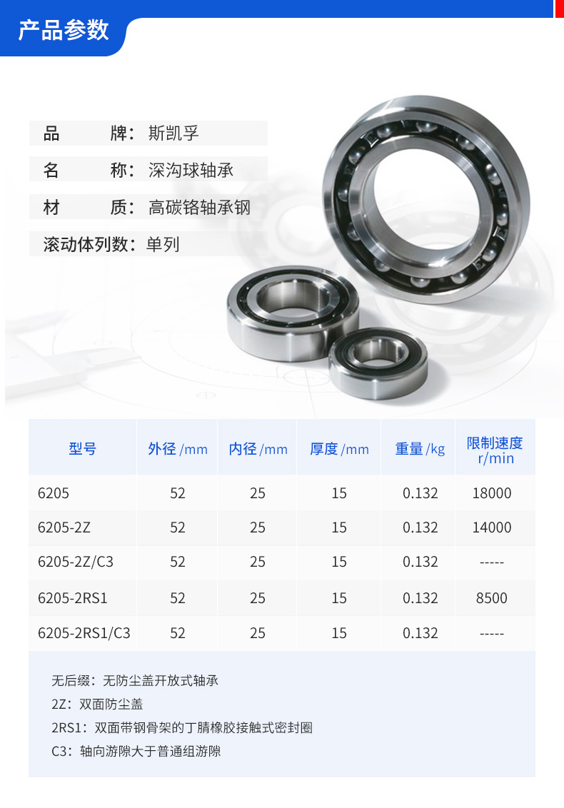| 轴承材质 | 高碳铬轴承钢(全淬透型)(GCr15) |