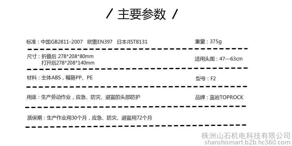 标准:中国GB2811-2007/欧盟EN397/日本JIST8131 Y类 品牌:蓝岩TOPROCK