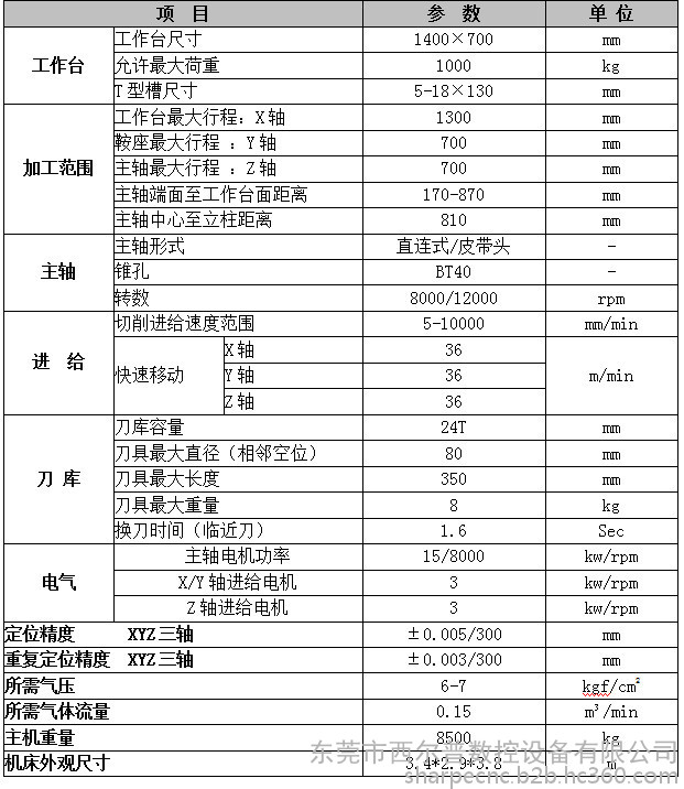 | 三轴行程(X*Y*Z) | 1300*700*700 |