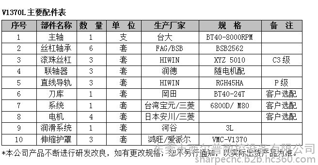 V1370L加工中心是采用目前市场上成熟稳定的台湾宝元(6800D)加工中心系统(或三菱M80),并配以24把圆盘式BT40刀库。产品配置较高,精度很高,稳定性很高。