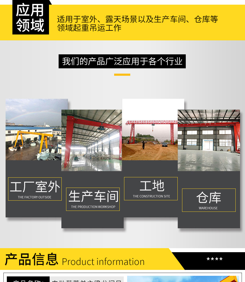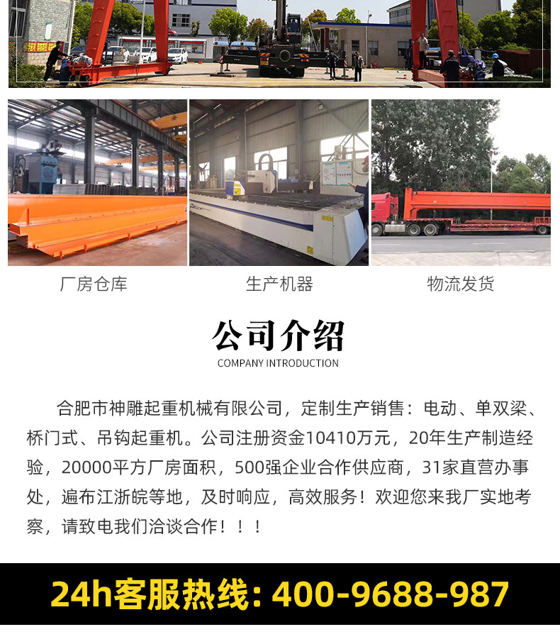您好!神雕,供应江苏龙门吊,L型单主梁门式行车支持规格定制,询价请告知您的龙门吊规格需求,神雕起重将为您提供详细的龙门吊报价,报价表包含配件价格及龙门吊参数,方便您做对比决策,您可以立即联系我们,获取L型单主梁门式起重机的具体资料,联系电话:400-9688-987