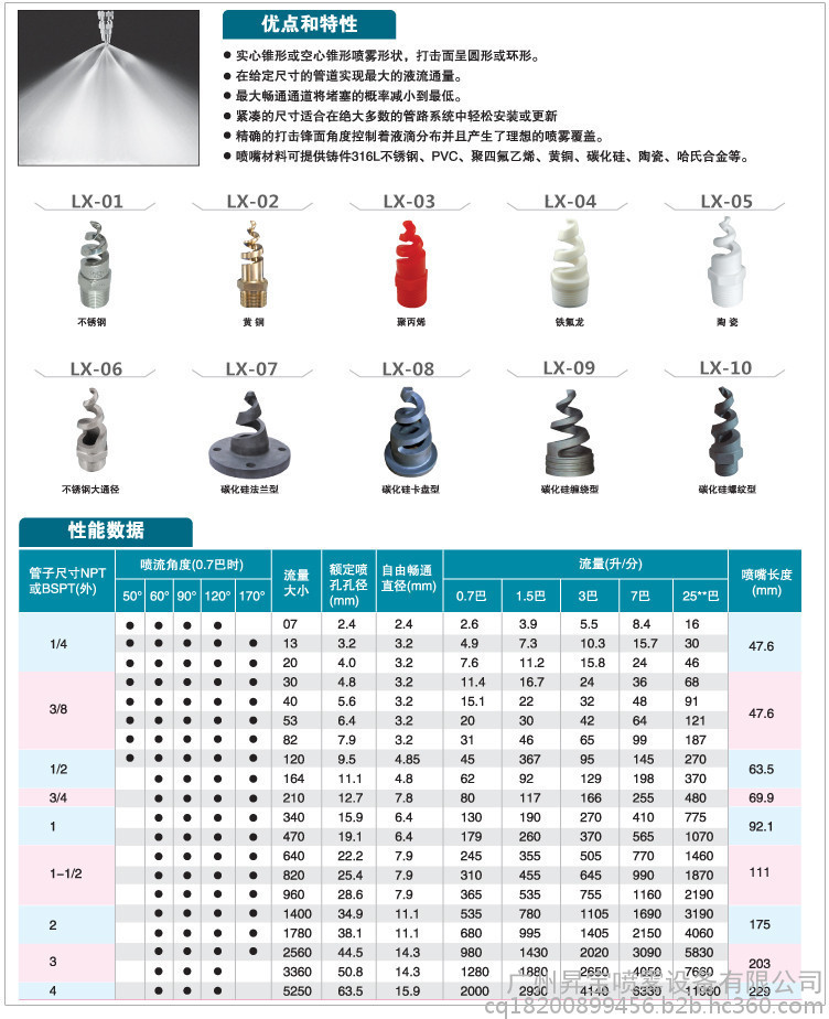 螺旋喷嘴可以在多数管道系统上安装或更换。可提供的喷嘴有NPT或BSPT(外)螺纹型。通常,1/4英寸-4英寸的喷嘴可分别用Cu、304SS、316L、PVDF、PP或碳化硅材料制造
