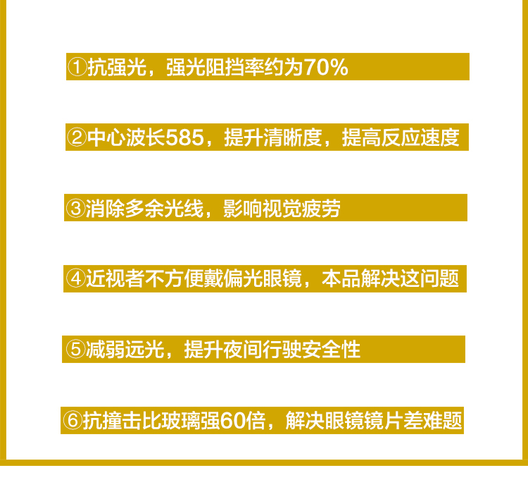 店铺现有5个款式的防眩镜,供新老客户选购