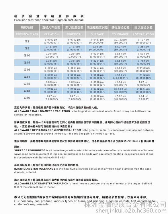 可用于高于400℃的高温环境下,硬质合金球硬度≥90.5,密度=14.9g/cm3。