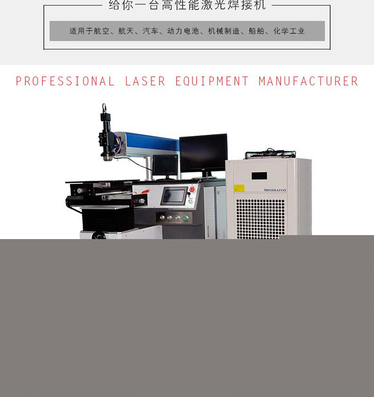 机器特点:* 自动化程度高,焊接工艺流程简单;*非接触式的操作方法能够达到洁净、环保的要求;* 采用激光焊接机加工工件能够提高工作效率,成品工件外观美观、焊缝小、焊接深度大、焊接质量高。应用范围:广泛应用于牙科义齿的加工,键盘焊接,矽钢片焊接,传感器焊接,电池密封盖的焊接等方面;应用于制造业,电子工业,粉末冶金,汽车工业,生物医学;BT20钛合金、HEl30合金、Li-ion电池等激光焊接。产品优势 提供于特别定制机器,可方便的接入客户方需与激光设备相配合的生产设备、生产线等; 可以根据客户自生产习惯、工艺需求,可为客户个性化定制辅助功能模块,使之更加符合客户生产需求,提高生产效率; 配合弯边成型设备,可以在高速运转的生产线上,自动将整卷钢板焊接成钢管。