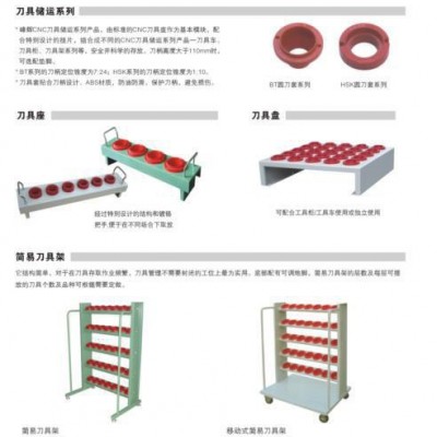 峰辉CNC刀具储运系列产品,由标准的CNC刀具座作为基本模块,配合特别设计的挂片,组合成不同的CNC刀具储运系列产品----刀具车、刀具柜、刀具架等系列,安全并科学的存放。刀柄高度大于110mm时,可选配垫脚。