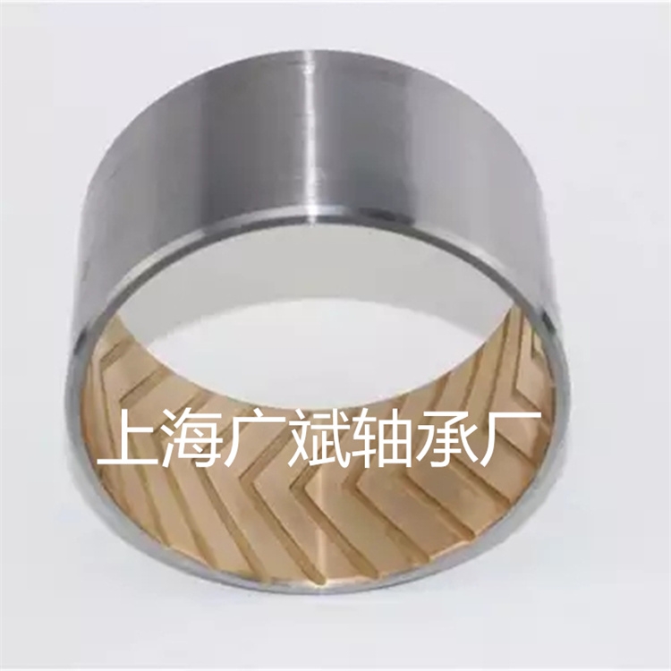 衬套自润含油钢基衬套,滑动轴承钢铜复合轴承,双金属材料包括钢背-铜基合金和钢背-铝基合金,铜基合金则以 低碳钢为基体,表面烧结满足不同工况的铜合金粉作为轴承工作层,这类材料 具有很好的承载能力和抗磨性,适用于脂润滑或者流体润滑工况。铝基合金则 以低碳钢为基体,表面覆着锡铝合金作为轴承工作层,具有很好的抗疲劳 强度和抗咬合性能,推荐流体润滑工况使用。低碳钢背为基体的表面烧结铅锡青铜合金材料,经数次高温烧结和致密轧制而成铜、钢一体的双金属带材卷制而成。