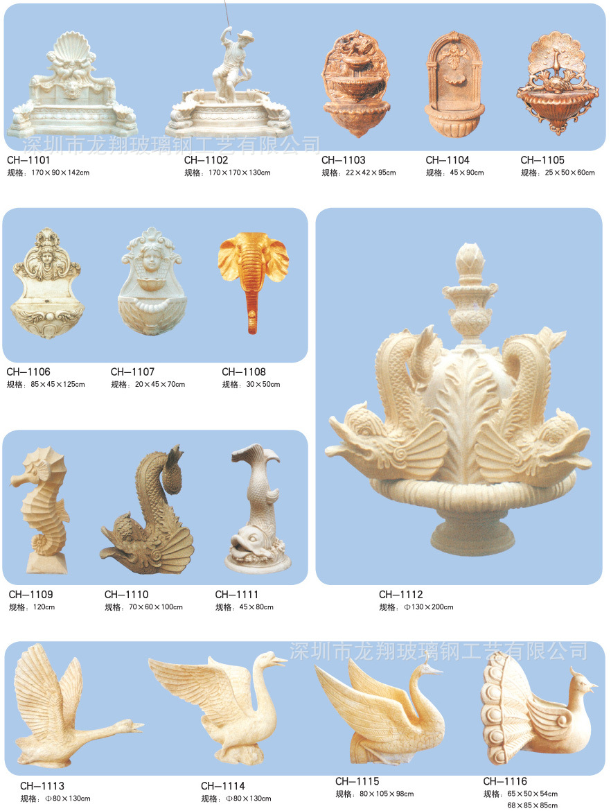 我工厂是一间集艺术设计及深化制作、生产为一体的集成企业,专业从事FRP制品、主题公园造型、玻璃钢工艺品、树脂工艺口、玻璃钢雕塑、人物雕塑、园林雕塑、景观雕塑、现代雕塑、广场雕塑、城市雕塑、校园雕塑、装饰雕塑、仿动植物雕塑、卡通雕塑、玻璃钢现代家私、泡沫雕塑、浮雕壁画、雕塑小品摆件、装饰摆设、工艺饰品、家居饰品、花容器花托盆、假山石艺术喷泉、造型柱罗马柱、、拱门、窗套、门套、山花、壁饰、展台展厅造型、专卖店招牌徒刑、异形椅玻璃钢垃圾桶、移动厕所、为主的现代高科技艺术性企业。以雕塑为主,以艺术为根,也古今中外之艺术精华,挟中华文化之传统,偕欧陆艺术之风韵,风格独特,产品精美绝伦、栩栩如生,深得艺术挚友的赞叹和青睐。我公司力求走高档高端路线,产品畅销国内外市场。
