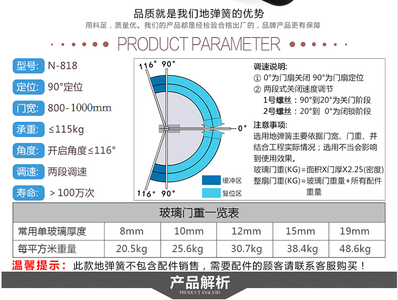 品牌:GMT(史丹利东铁) 产品型号:N-818 产品简介:豪华型 外型尺寸:297x143x50mm **大门扇承重:115kg 门扇适用宽度:800-1000mm **大开启角度:116度 特性:中心臂双向开启型,二段速度调整 此商品不包邮
