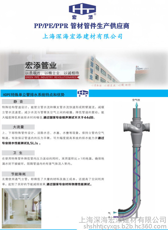 宏添 特殊单立管排水管件pe同层排水管同层排水报价虹吸雨水系统厂家pp静音管瓶型三通