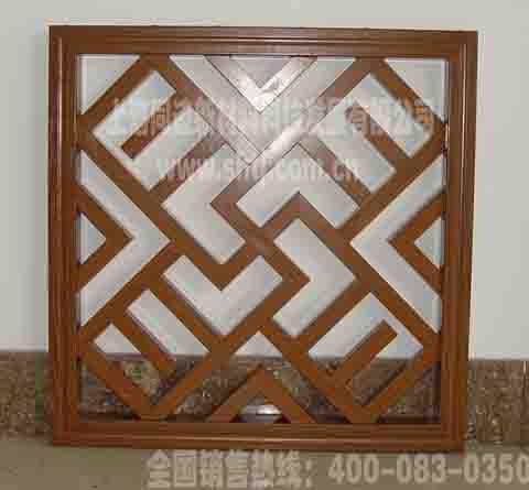 格栅|花格隔断的水印氟碳木纹铝型材具有突出的耐候性、耐磨损、耐腐蚀性等特性,且具有硬度高、不易变形、仿木真图案不褪色、不脱落等特点,适合室内外各类场合使用。本产品填补了国内以金属材料替代原木建筑装饰的空白,可以提高建筑、装饰、园林及市政设施的档次,带动建筑、装饰、园林及市政等行业环保材料的发展。同时,可以节约大量自然资源(每吨水印氟碳木纹铝型材可替代木材3 立方米以上),为保护生态环境作出积极的贡献,并能满足人民群众物质生活日益提高后对自然美感的精神追求,为创造人类社会与自然生态和谐发展,提供了完美的建筑装饰材料——水印氟碳木纹铝型材。仿古花格,仿古屏风,木纹铝合金花格,木纹铝合金屏风,金属仿古花格,金属仿古屏风等铝合金屏风