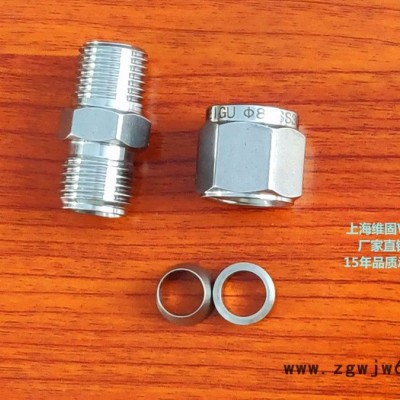 卡套接头概述: 卡套式管接头由三部分组成:接头体、卡套、螺母。当卡套和螺母套在钢管上插入接头体后,旋紧螺母时,卡套前端外侧与接头体锥面贴合,内刃均匀地咬入无缝钢管,形成有效密封。卡套接头具有连接牢靠、耐压能力高、耐温性,密封性和反复性好、安装检修方便、工作安全可靠等特点。 使用领域: 卡套接头的工作原理是将钢管插入卡套内,利用卡套螺母锁紧,抵触卡套,切入管子而密封。它与钢管连接时不需焊接,有利于防火、防爆和高空作业,并能消除焊接不慎带来的弊端。因而它是炼油、化工、石油、天然气、食品、制药、仪器仪表等系统自控装置管路中的一种较为先进的连接件。适用于油、气、水等管路连接。 制造标准: 制造标准:GB3733.1~3765-83 公称压力:25MPa--40MPa 适用温度:≤450℃ 适用介质:油、水、气等非腐蚀性或有腐蚀性介质 制造材料:201 304 316 20# 配管:Φ3~Φ42的普通级精度无缝钢管 锥管螺纹:ZG,G,NPT等 支持非标定做,欢迎广大客户来电洽谈