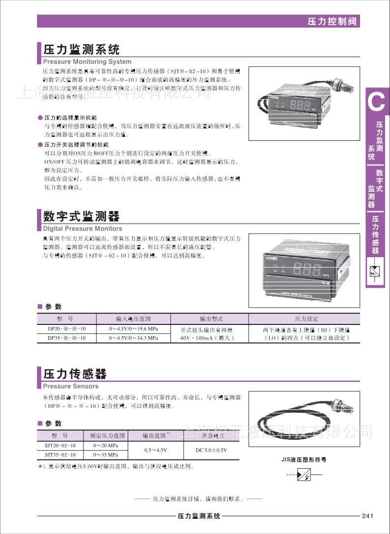 日本油研yuken压力传感器为半导体构成,无可动部分,故可靠性高,使用寿命长,与专用监测器配合使用,可得到高精度。