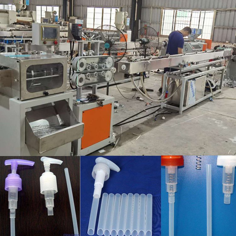 ??生产线由挤出机、机头、冷却定型装置、牵引切割装置、理管输送装置等组成部分,可实现:单色多色共挤等多种装置。