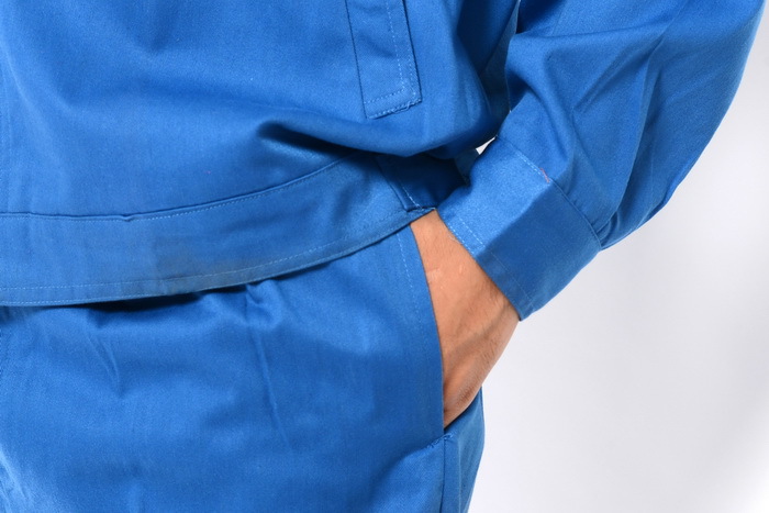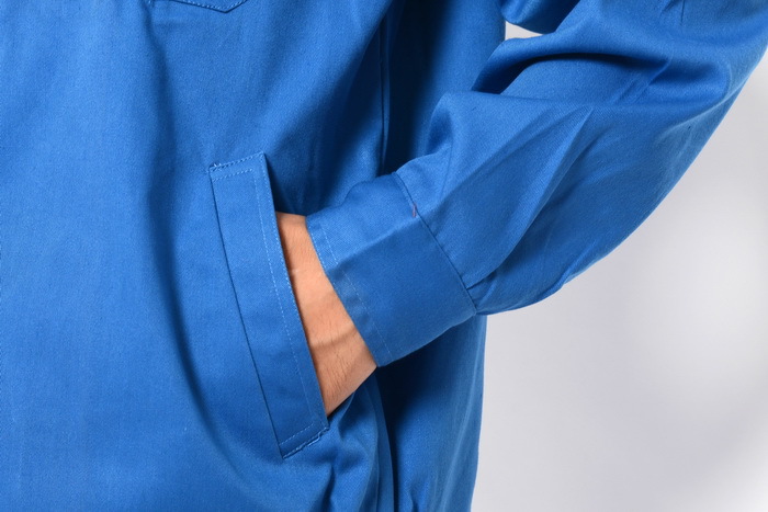 此款工装面料为全工艺21支涤棉面料 原料为40%棉60%涤纶 特点“保暖性强 容易水洗 轻便 不起球 不褪色 适宜于寒冬室外作.