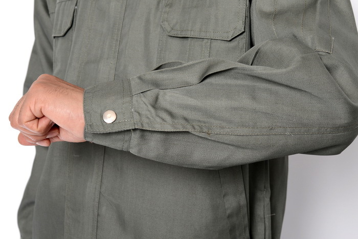 此款工装面料为全工艺21支涤卡 原料为40%棉60%涤卡 布料手感特好 特点“保暖性强 容易水洗 轻便 不起球 不褪色 适宜于寒冬室外作.