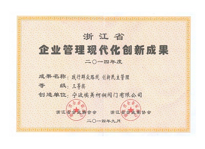 宁波埃美柯有限公司是中国**大的铜阀门生产和出口基地,也是中国五金制品协会副理事长、全国阀门及水暖洁具行业协会理事长单位。AMICO牌产品不仅品种多,规格全,而且具有外型美、性能佳、品**等特点,多次获得**称号,并取得ISO9001:2000质量管理体系,ISO14001环境管理体系等一系列国际认证。2002年水龙头产品又获“全国水龙头行业**知名品牌”称号。