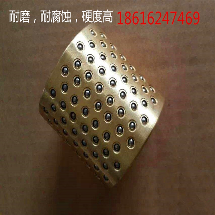BK4615铜基钢球保持架,是以铜合金为基体,并在其外圆表面上,加工出排列有序、大小适当,形状特殊的孔穴,在其孔穴中镶入滚动轴承钢球。孔口采用沟槽圆周锁球工艺,有效地解决了传统式点式锁球和压痕锁球不能完全防止钢球脱落的难题。孔底加工出90°止口使铜球在孔内自由转动而不脱落。由于钢球的直径大于保持圈的壁厚,所以在使用时钢球高出保持圈内、外圆表面,直接与相配的孔与轴接触,使基体(保持圈)浮于中间,并且相配的孔与轴半径之差小于钢球直径,即钢球与之配合为过盈配合,配合精度高,轴与孔相对运动灵活。该产品以铜基,按一定的角度和密度有序地排列,采用特殊工艺加工而成。产品适用于冷冲模具,精密机床等。
