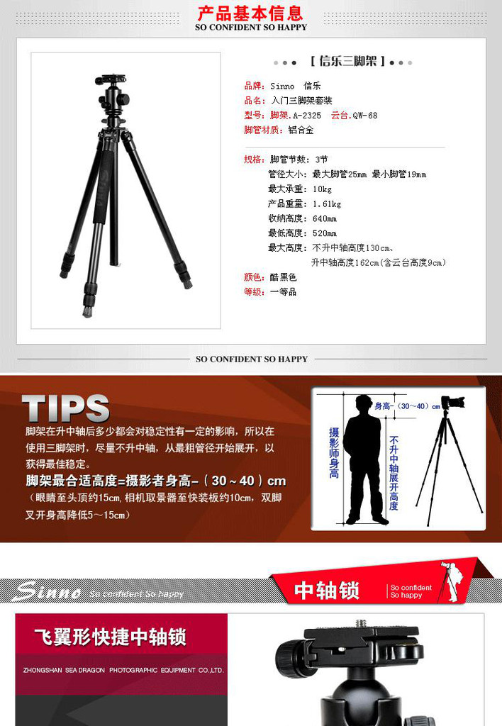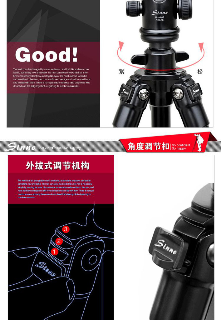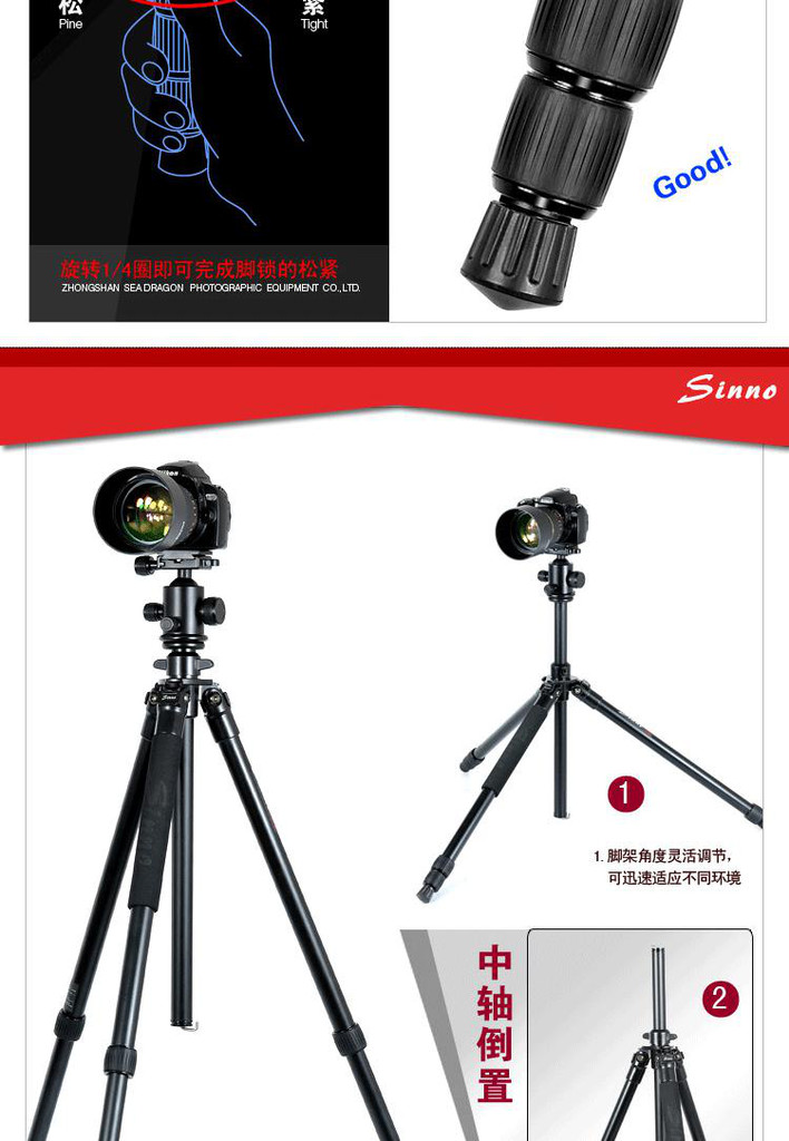 本公司供应摄影单反三脚架,品牌sinno,型号A-2325。参数为:材质:铝合金,适用机型:佳能,尼康。质量保证,欢迎咨询洽谈。