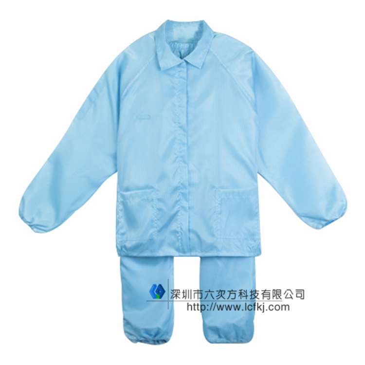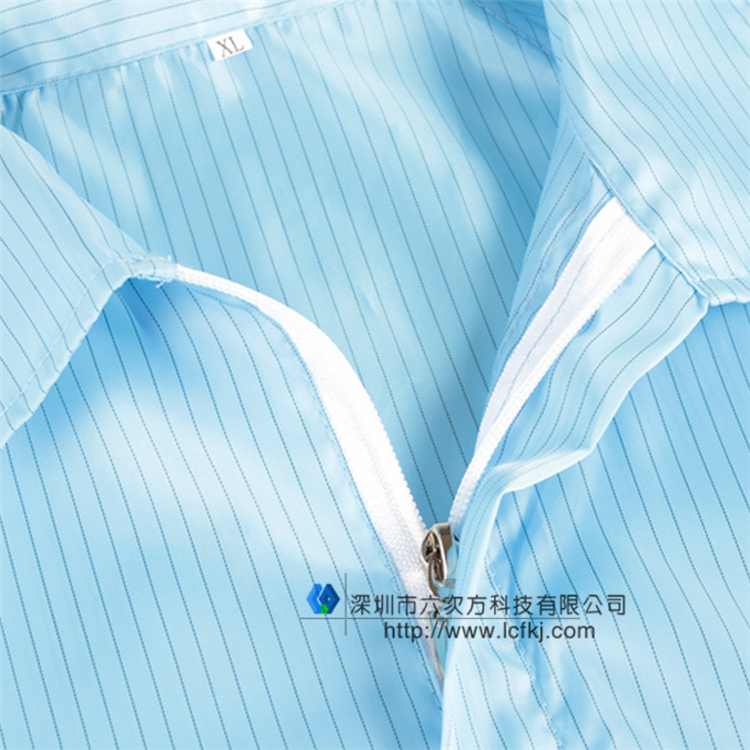 防静电服是由专用的防静电洁净面料制作。此面料采用专用涤纶长丝,经向或纬向嵌织导电纤维。 具有高效**的防静电、防尘性能,薄滑,织纹清晰的特点。在制作成衣过程中采用专用的包缝机械,有效减少微粒的产生。无尘的粘扣带避免了因掉毛污染环境。根据级别要求提供不同款式,并采用导电纤维缝制,使服装各部分保持电气连续性;袖管裤管为特有的双层结构,内层使用导电或防静电罗纹,从而满足**别无尘环境的要求。