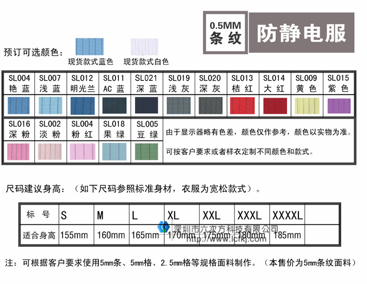 防静电服是由专用的防静电洁净面料制作。此面料采用专用涤纶长丝,经向或纬向嵌织导电纤维。 具有高效**的防静电、防尘性能,薄滑,织纹清晰的特点。在制作成衣过程中采用专用的包缝机械,有效减少微粒的产生。无尘的粘扣带避免了因掉毛污染环境。根据级别要求提供不同款式,并采用导电纤维缝制,使服装各部分保持电气连续性;袖管裤管为特有的双层结构,内层使用导电或防静电罗纹,从而满足**别无尘环境的要求。
