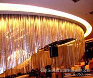 金属网帘可被应用于大尺寸的割断或正面装饰,亦可小面积的局部装点。其天然金属色泽随着光线的不同变化余灯光产生的反射作用,透过金属网,形成一个隔而不断的整体空间,给人以视觉上的开阔感,想象空间无限。