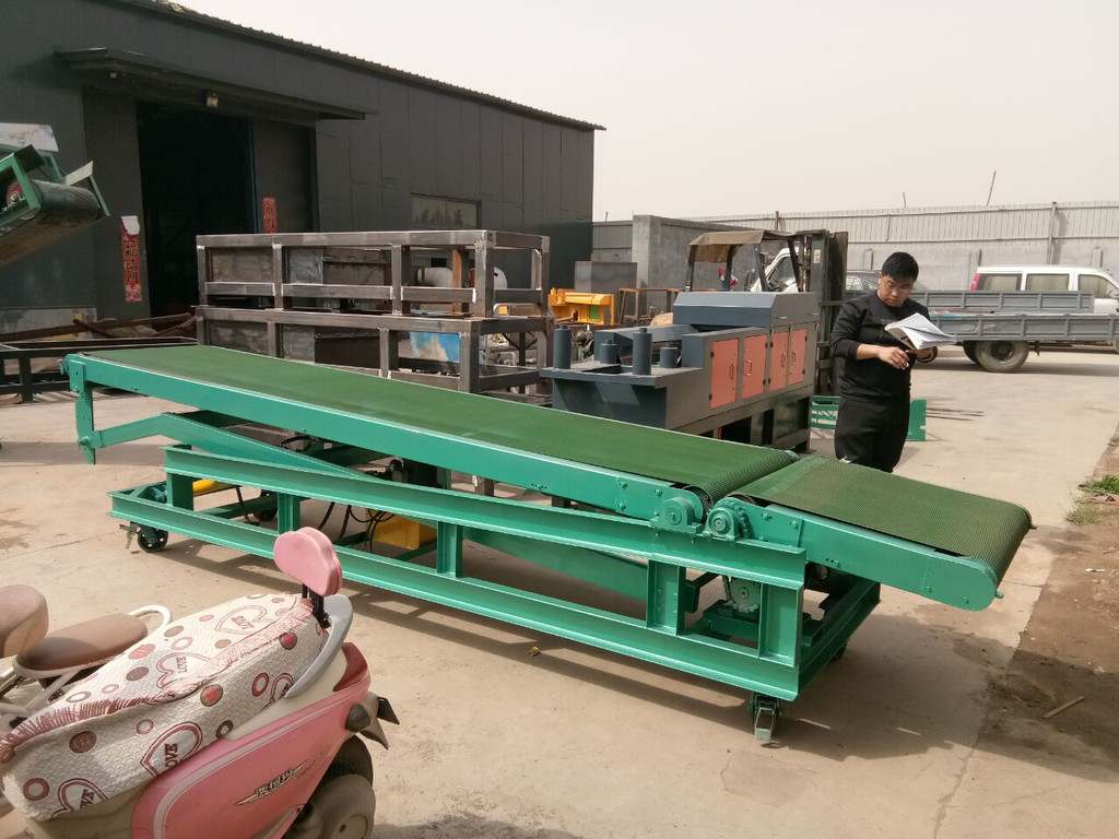 皮带输送机,可以伸缩,移动,通过皮带可以传送货物。在输送及上下装卸货品时,缩短了人工往返搬动物料的距离,及装卸时间。