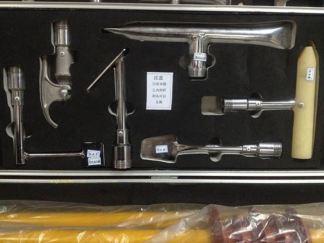专用除冰组合工具由除冰器具及绝缘杆两部分组成,除冰器按照作用设计成不同形状,使用时可以通过敲、铲、钩等方式有效除去瓷瓶、支架、导线及杆塔上的积雪及覆冰。使用时,首先根据需要从套件中选取合适的除冰器具,将其安装到绝缘杆的一端并拧紧后即可使用。绝缘杆分为长、短两种规格,可以根据现场情况进行任意组合,以获取合适的长度来满足不同场合的需求。