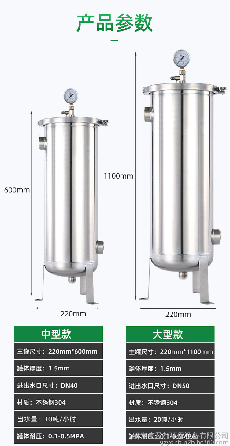 7、滤芯长度: 10英寸、20英寸、30英寸、40英寸