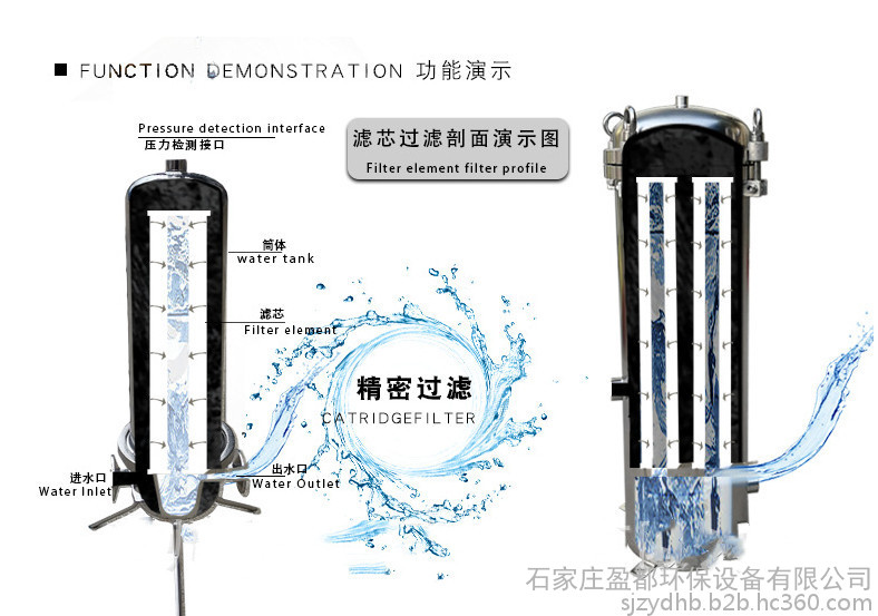 精密过滤器被广泛应用于食品、医药、电子、化学、石油等工业的预处理工艺中。精密过滤器具有过滤精度高、过滤阻力小,水通量大、耐酸碱等特点,而且本公司生产的精密过滤器价格低廉运行费用低。