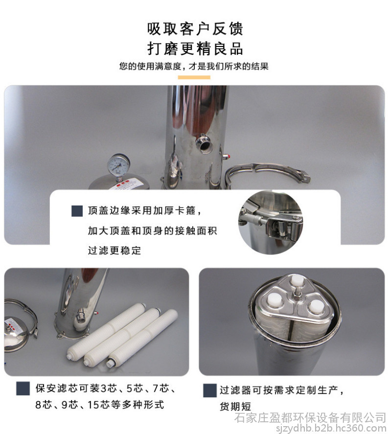 一、精密过滤器又称保安过滤器,是采用新型的聚丙烯超纤维熔喷滤芯(PP棉滤芯)或线绕滤芯做为滤材,根据不同精度的过滤孔径,截留不同粒径的微粒,从而达到过滤的目的。