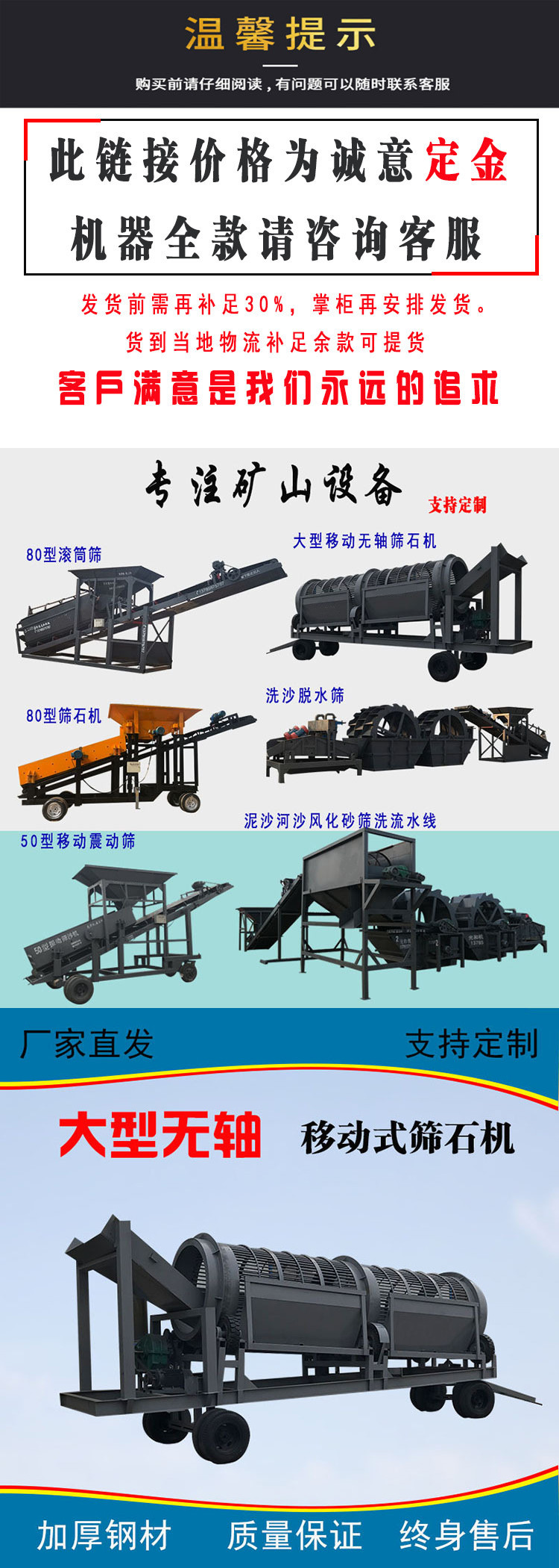 滚筒筛工作环境不好,应及时定期进行维护保养以让设备正常运转。开机前检查减速机油位是否符合要求,不足时应补足,平时每周检查一次,对于外露轴承、轴套、十字轴每班(8小时)加油(润滑脂)一次,每天对角带松紧情况进行检查并做调整,发现断线,开胶应及时更换。(应记下各角带型号规格,储备备件以便应急)。三角带输送带为橡胶产品,使用几天会伸长产生松动达不到转动功率,应及时检查调整松紧程度。输送机带发生走偏时应及时调整到中间位置,输送带主梁两端均有两个调节螺栓。调节时先松开轴承合螺栓,再向右向旋动螺母即可达到调节目的,两侧螺杆应调节相同尺寸,否则会跑偏。如发现输送带跑偏,松开偏侧轴承合螺栓,并右旋主梁偏则螺母使头轮向外移动,便可达到校正目的。向右偏调紧右侧,向左偏调紧左侧。