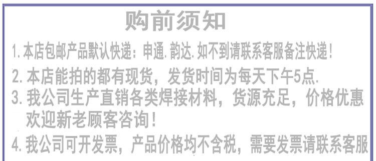 5、因焊材价格上下略有浮动,拍之前请联系客服咨询 所需焊材规格 型号 价格 是否准确