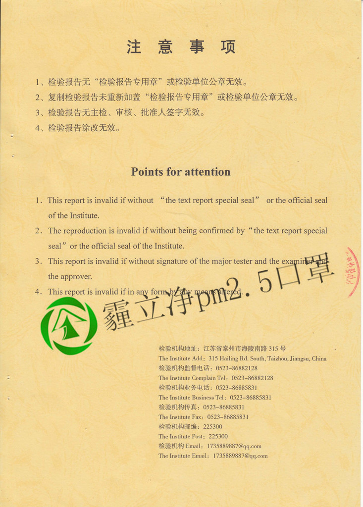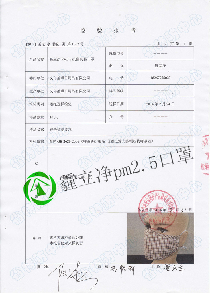 盛琪日用品为义乌市场专业口罩生产商、旗下品牌:霾立净pm2.5口罩、沃莱pm2.5口罩。旗下pm2.5系列口罩分别通过江苏省特种安全防护中心和**安全生产检测中心检测 而不是其他厂家所谓*国实验室检测等**噱头 pm2.5口罩市场鱼龙混杂 如何区分:1看口罩是否经过**机构检测 2..看口罩做工走线 3.看口罩使用布料 高品质的口罩面布和里布都是用纯棉的,而有一些商家为了利润会选择使用涤棉 或者更差的涤纶布 价格和我们的纯棉相差3倍以上 4..看口罩中间过滤层 市场大部分都是用太空棉 因为便宜但是没有防护效果 而真正有防护效果的都是要使用针刺棉和无纺布