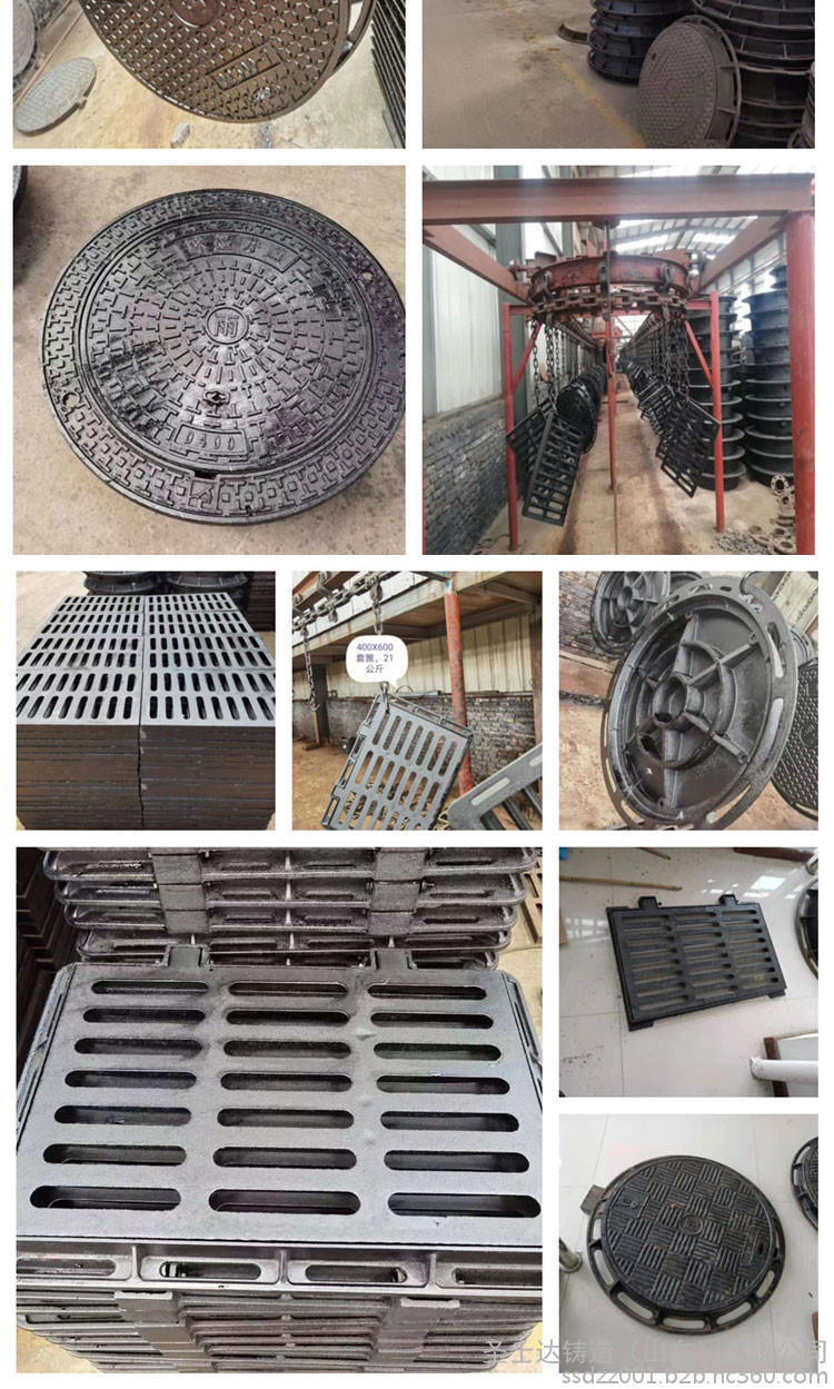 球墨铸铁井盖、篦子比普通的铸铁井盖、篦子的优点:1.防盗性能强:防盗合金铸铁铸成,非专业人士无法破坏,井盖专用防盗机构从根本上解决不了井盖丢失的社会问题2.低噪音:所有井盖都有胶条,解决了因车轮碾压产生的噪音3.不跳盖:井盖与井圈几何尺寸设计合理,保证疾驰的车辆通过后井盖不翻转、移动4.寿命长5.设计合理:安装、开启方便,便于地下管道设备的检查、维修6.外形美观:重量轻,承重量大,产品铸纹清晰,防滑性能优良,色彩悦目7.外观设计可以依据特客户要求进行更改、之后侵泡黑色沥表漆,使产品外观光亮、整洁、耐腐蚀8.材质上乘:采用球墨铸铁QT500-7材质,提高产品的密度,使产品具有很强的抗压、抗弯、中击、耐酸碱、耐老化,不易变形等特点。