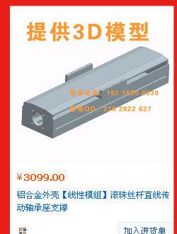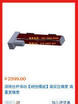 本条价格仅供参考,更多滚珠丝杆、支撑座、线性模组详情请联系: 杰西蔡生13538572254 QQ:757144080 温馨提示:电话或QQ洽谈好具体要求以及价格后,选择在线支付来做结算的客户,可以享受已洽谈好的价格基础上再给9.8折,请在线支付时要求客服帮忙修改价格。不怕亏本,只为线上销量成绩,敬请各位新老客户惠顾! | ||