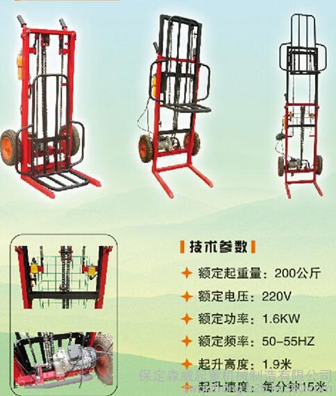 电动堆高车 200KG电动叉车加万向轮 小型堆码铲车