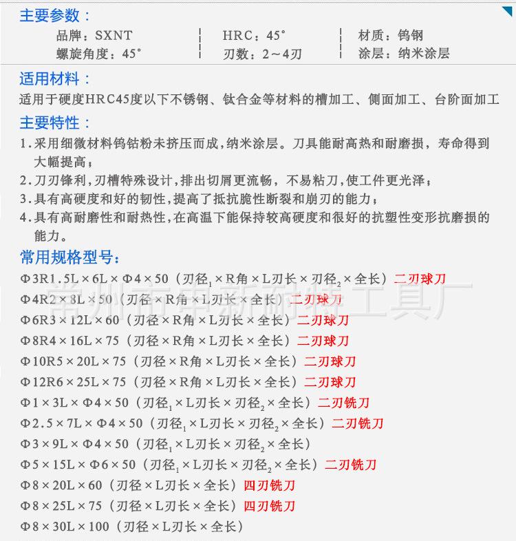 | 材质 | 钨钢合金涂层球刀 |