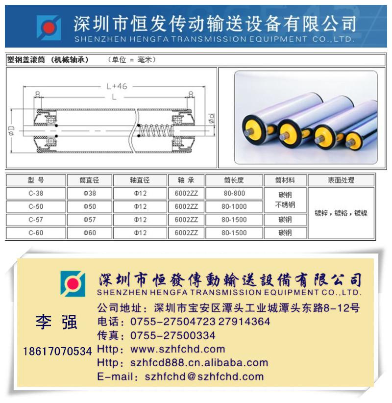 深圳市恒发传动输送设备有限公司主要经营流水线、生产线及配件,如:标准与非标准链条、不锈钢链条、链轮、不锈钢网带、各种动力和无动力滚筒,PVC滚筒,滚筒梯等、三倍速链条、导电轨、集电子、阻挡器、涨紧座、流利条PU 、PVC 输送皮带、高温特氟龙网带、不锈钢网带、雾化喷嘴、吸烟罩、脚踏阀、导电轮、导电槽、、牛眼、福莱轮、风批滑轮、流水线铝型材、连接器、脚杯、工业插座、照明设备系列等等一系列设备和配件,欢迎您来电咨询。