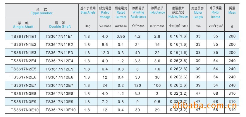 法兰为42MM的产品TS3617N1E1,N11E1;TS3617N1E2,N11E2;TS3617N1E3,N11E3;