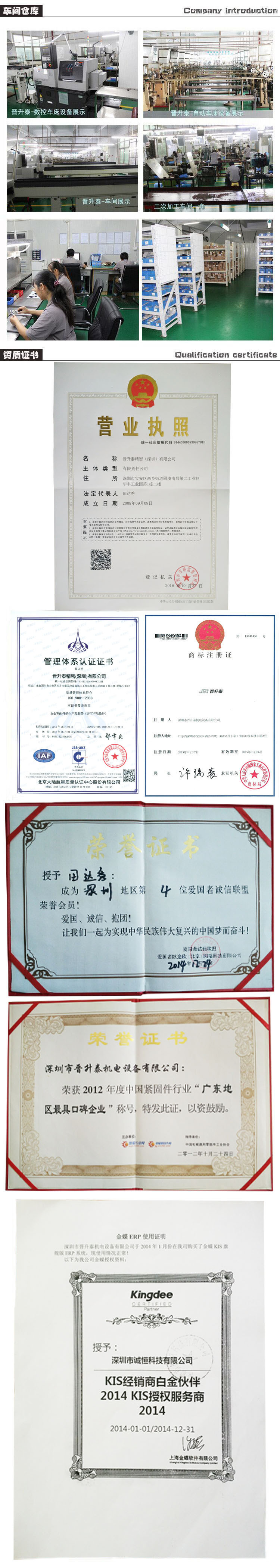 晋升泰精密(深圳)有限公司是专业从事环保精密零件的研发与制造企业, 公司成立于2009年。一直秉承****、专注专业的理念。为顾客快速提供**度高、品质保障、成本低的精密零件。以及技术解决方案,力争为紧固件行业发展助一臂之力。