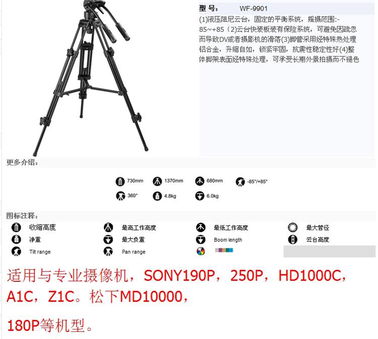 伟峰 WF-9901/FT-9901 专业三脚架 双手柄 摄