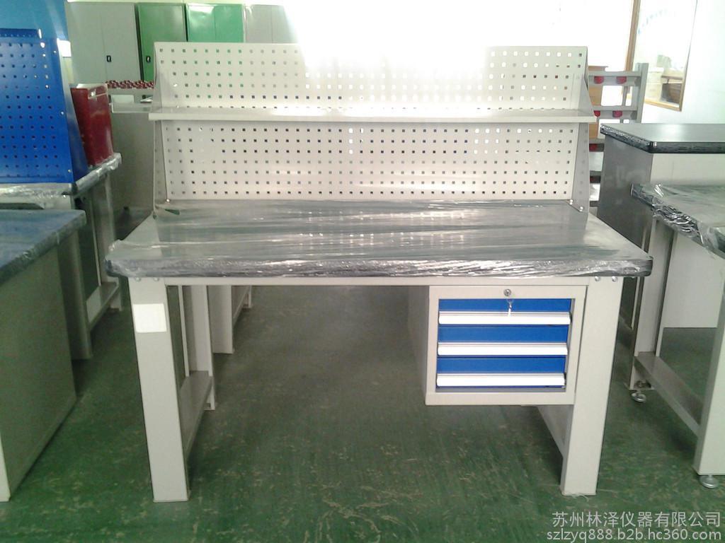 工作台适合于模具、钳工、检测、维修、组装等各种不同应用场合,具有良好的耐腐蚀性,耐脏性,抗冲击性和承重能力强。桌面经特殊处理,具有防腐、抗冲击力强等特点,多种桌面的选择,可配合不同的使用要求;所配置的抽屉、柜门方便使用者存储工具;桌角上预留电源孔,方便安装电源插座。