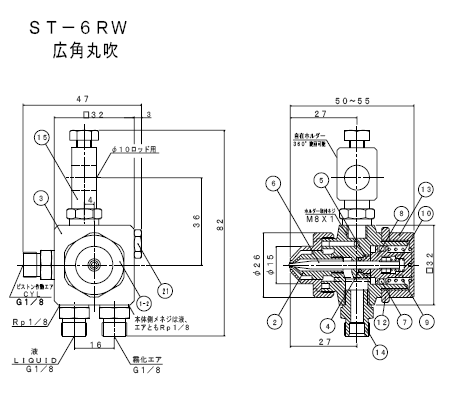 | 标准型(空气兼用) | 低压型(雾化空气分离式) |