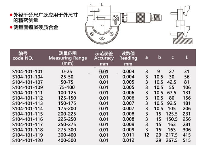 | 读数值 | 0.01mm |